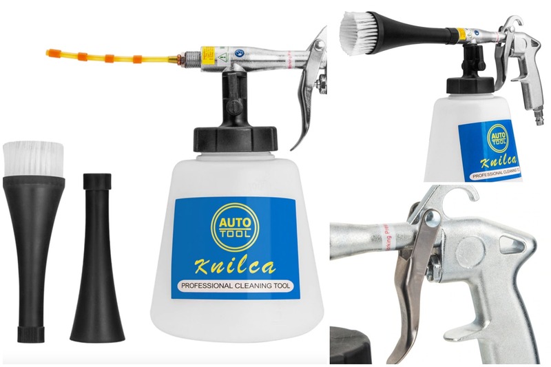 Так называют вихревой пистолет с емкостью для чистящего средства. Позволяет самостоятельно выполнить химчистку салона (при условии, что у вас есть гараж и пневмокомпрессор). Творит чудеса, превращая даже «убитые» салоны в «как новые». Главное — не переборщить с химией, давлением и делать все аккуратно, не спеша. Также инструмент можно использовать для чистки ковров, мягкой мебели, микроволновых печей и прочего кухонного оборудования.