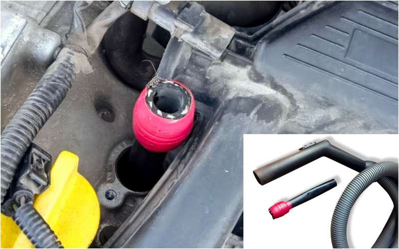 Если выворачивать свечи зажигания, не очистив глубокие колодцы в головке блока, то весь мусор попадет в цилиндры. Очищаю эти труднодоступные места пылесосом с самодельной насадкой из пластиковой трубки. Она должна проходить до дна колодца, при этом сквозь нее должна свободно пролезать свеча. Тогда весь мусор со дна будет втянут пылесосом.