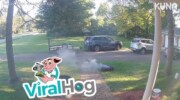 Посмотрите, как отлетевшее на 100 км/ч колесо врезается в дом